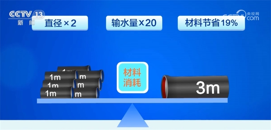 黃石新興管業(yè)質(zhì)量部副部長 宋延新:我們超大口徑三米管雖然看比1米管只是大了2米的口徑,但是輸水量卻提高了20倍以上。舉個(gè)例子,要想把西湖的水抽干,用1米口徑的管需要104天,而用現(xiàn)在的3米管只要5天就可以完成了。