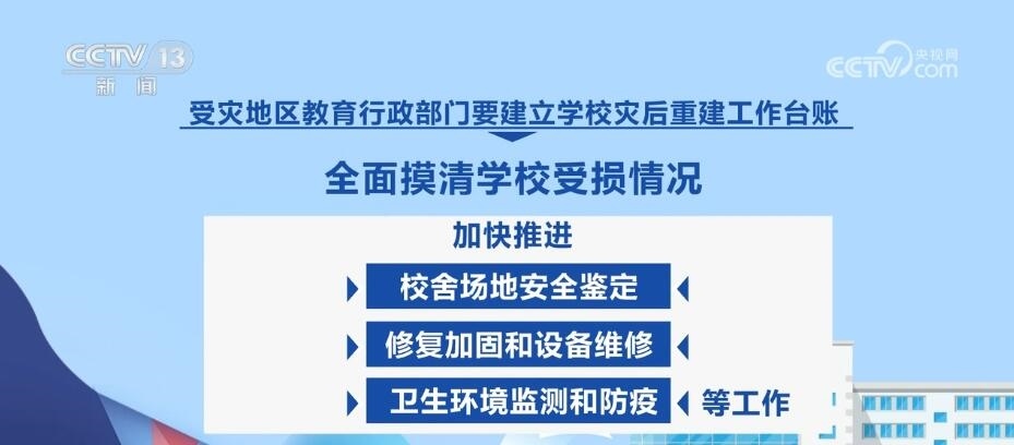教育部強調,要慎終如始做好災后恢復重建各項工作,穩(wěn)慎做好受災師生安置慰問、補償救助等工作。受災地區(qū)教育行政部門要建立學校災后重建工作臺賬,全面摸清學校受損情況,加快推進校舍場地安全鑒定、修復加固和設備維修、衛(wèi)生環(huán)境監(jiān)測和防疫等工作。確實在開學前不能完成災后重建的,要立足實際采取臨時轉移就學等舉措,全力保障正常開學。各地各校要一體推進防汛救災和校園安全治理,健全校園安全常規(guī)檢查機制,持續(xù)深入排查整治風險隱患,有效防范原發(fā)、誘發(fā)性自然災害和次生安全風險。