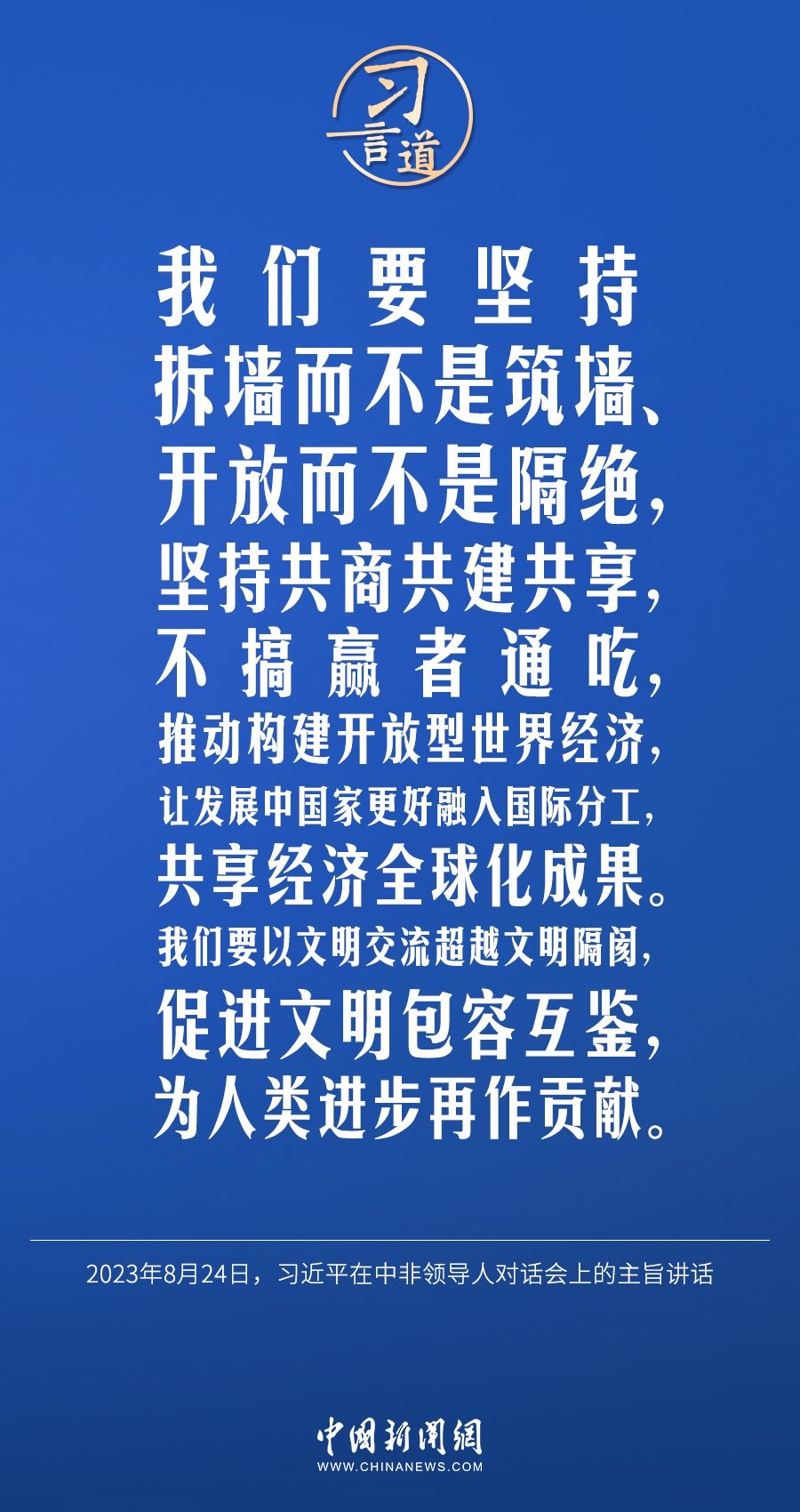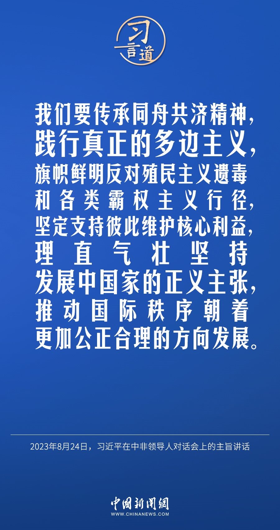 當(dāng)?shù)貢r(shí)間8月24日晚,國家主席習(xí)近平和南非總統(tǒng)拉馬福薩在約翰內(nèi)斯堡共同主持中非領(lǐng)導(dǎo)人對(duì)話會(huì)。習(xí)近平發(fā)表題為《攜手推進(jìn)現(xiàn)代化事業(yè) 共創(chuàng)中非美好未來》的主旨講話。習(xí)近平指出——