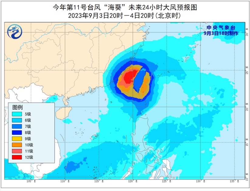 中央氣象臺9月3日18時繼續(xù)發(fā)布臺風紅色預警