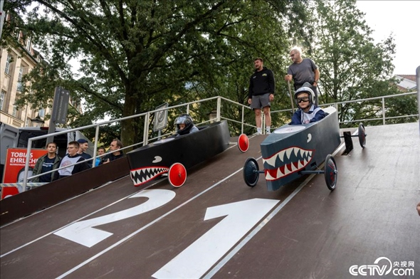 德國巴伐利亞州科堡舉行肥皂盒汽車比賽。參賽者將車子打扮成各種奇怪的造型,在沒有動(dòng)力的情形下滑下坡道,完成比賽。