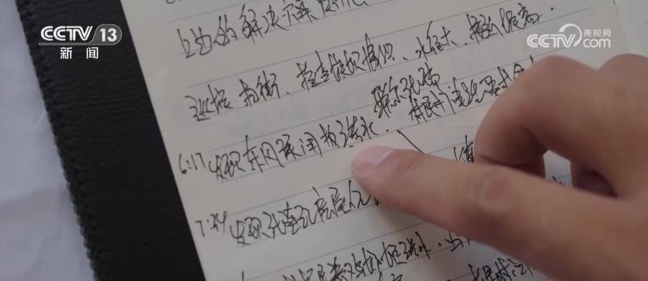 村民撤離后,面對這段隨時可能發(fā)生危險的土堤,張義超和其他4名留守人員分成兩組24小時巡堤。從張義超的工作筆記中可以清晰地感受到8月6日早晨水情的危急:“6:17,東風(fēng)渠閘板滲水”,“7:34,村民房屋后堤壩滲水”,“7:46,養(yǎng)雞場附近滲水”……不斷出現(xiàn)的滲水點(diǎn)讓26歲的張義超慌了神。