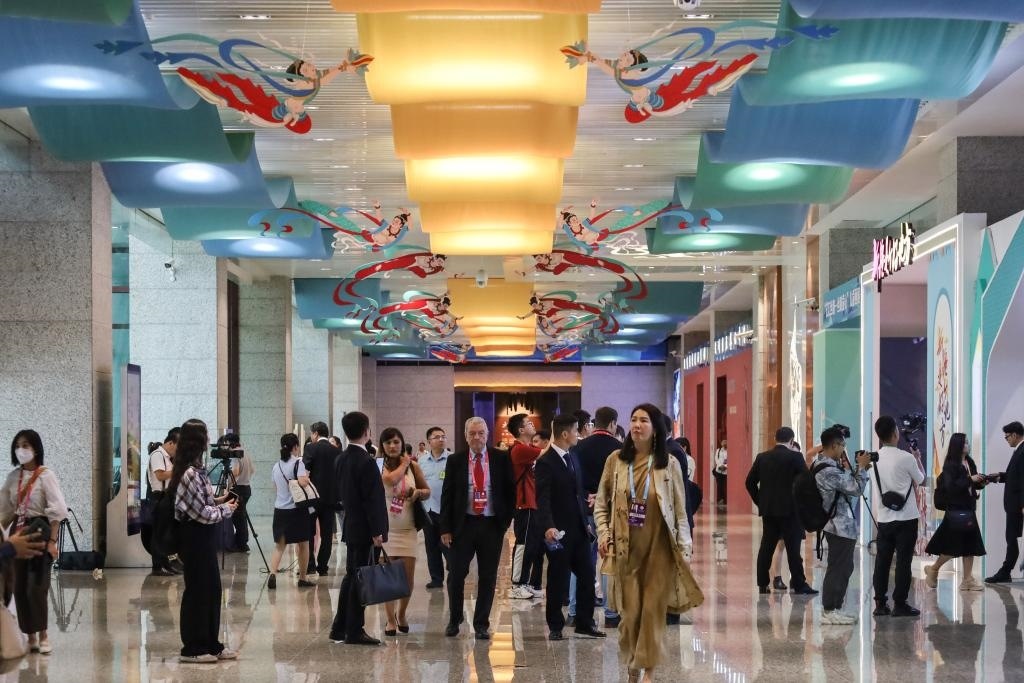 9月6日,與會(huì)嘉賓在第六屆絲綢之路(敦煌)國際文化博覽會(huì)上參觀。新華社記者 馬希平 攝