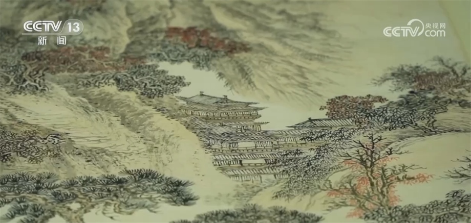 這幅《秋林書屋圖》,是清初四王之一、非常著名的畫家王翚在79歲的時(shí)候創(chuàng)作的,是珍貴的國家一級文物。這幅畫呈現(xiàn)的就是文人在山中茅屋當(dāng)中讀書的一個(gè)情景。雖然300多年的時(shí)間過去了,但是展開這幅畫,我們?nèi)匀豢梢钥吹椒浅ur明的色彩,蒼林翠竹與霜葉秋楓交相輝映,給我們帶來非常美的視覺享受。