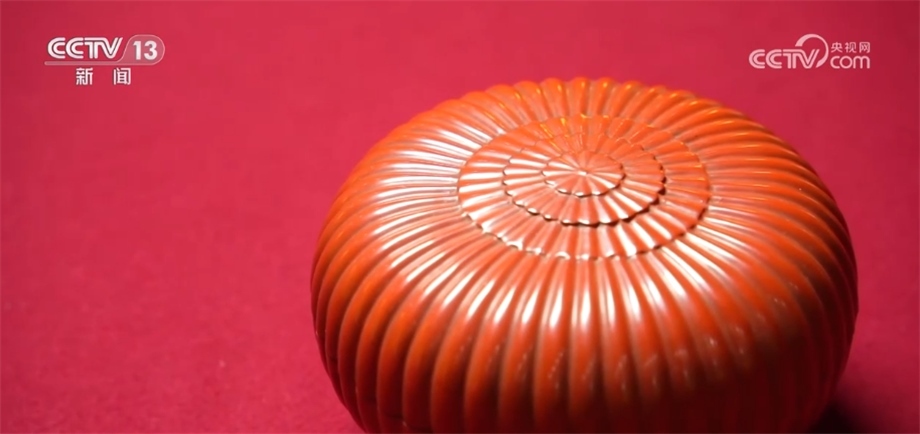 總臺記者 楊雪:與多穆壺一樣,很多文物都是逐漸從生活用品演化成為藝術(shù)品的。像我們眼前看到的這一款清乾隆款朱漆菊瓣盒就是其中之一。它本來是盛放像干果、小點(diǎn)心等這些小件物品的盒子,在不斷使用的過程中,逐漸演化成為了宮廷藝術(shù)品。