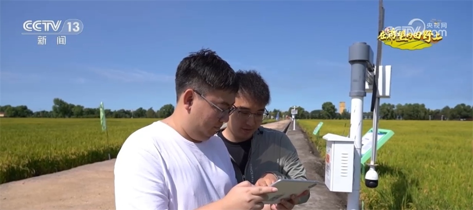 閆家崗農(nóng)場黨委書記 張雅南:咱們現(xiàn)在手里拿的這塊屏,就相當(dāng)于在我們田間地頭建設(shè)了一個農(nóng)業(yè)的智慧大腦。您看我手邊指的這一個,下面就是視覺傳感器,它是做什么用的?它就是在水稻的不同生育期負(fù)責(zé)拍攝水稻生長的狀態(tài)。原來人工巡田,現(xiàn)在通過智慧大腦來巡田、來決策,所以更科學(xué)、更高效。