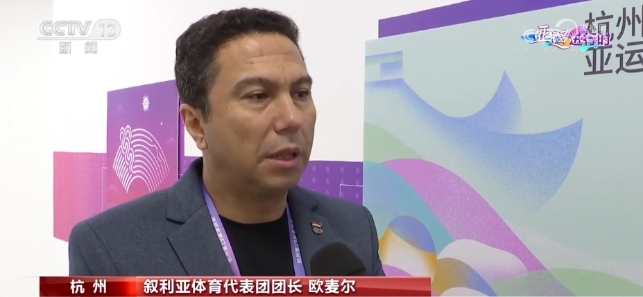 敘利亞運(yùn)動(dòng)員 艾哈邁德·古松:今年已經(jīng)是我第三次來中國比賽了。當(dāng)我走在街上,我可以看到很多人向我問好,歡迎你來到這里。而且一旦我們需要幫助,很多人都來為我們提供幫助。來到這里就像回家一樣。而且哪里都是那么干凈美麗,場館也是我見過的最棒的場館,謝謝中國給亞洲帶來了一場如此精彩的亞運(yùn)會(huì)。