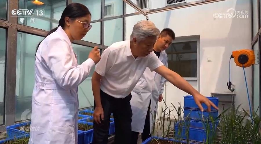 在河南省農(nóng)業(yè)科學(xué)院的玻璃溫室,50株剛剛破土一個(gè)月的小麥新品種幼苗長勢(shì)不錯(cuò)。小麥品種的培育者——小麥育種專家許為鋼院士帶著團(tuán)隊(duì)細(xì)心地查看這些幼苗。