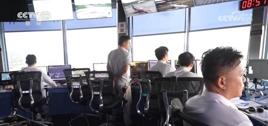 這里就是控制整個(gè)機(jī)場航班的“中樞”所在——空管塔臺(tái),伴隨著一句句簡短的指令發(fā)出,一架架滿載著旅客的客機(jī)有序起降。管制員們一邊緊盯電腦雷達(dá)顯示器,一邊查看機(jī)場跑道情況,指揮調(diào)控飛機(jī)的飛行線路和高度。
