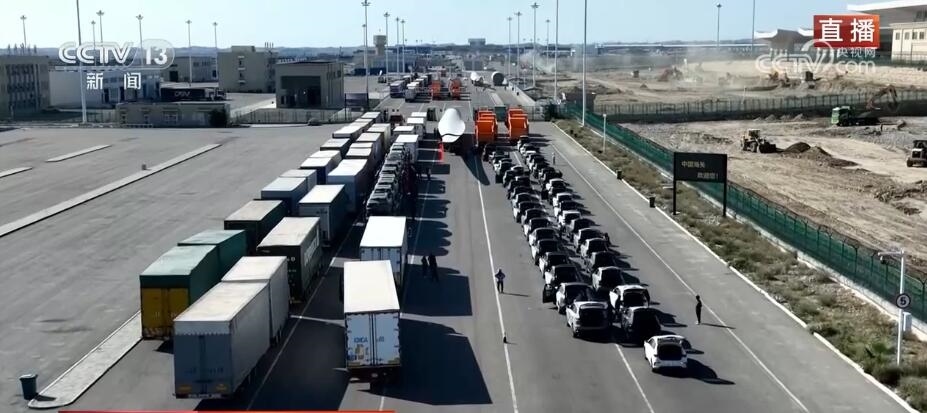 總臺(tái)記者 崔寧:我現(xiàn)在就在霍爾果斯公路口岸的貨運(yùn)通道。按照慣例,每年的10月1日—3日,中哈兩國之間的公路口岸會(huì)閉關(guān)三天,今天(10月4日)是開關(guān)后的首個(gè)通行日。我們看這邊,各種“中國制造”的車輛陸續(xù)通關(guān)出境,前往中亞各國了。除了眼前繁忙的通關(guān)場景,不遠(yuǎn)處,口岸的路面拓寬工程也傳遞出了這里的發(fā)展活力。