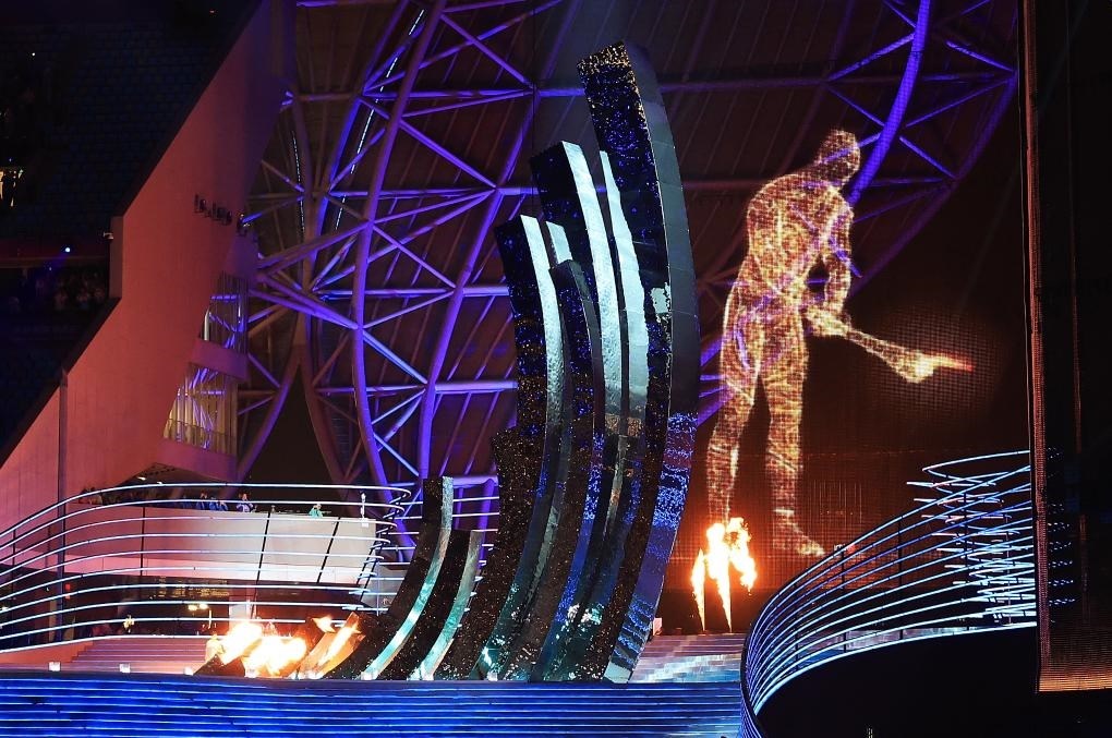 9月23日,數(shù)字火炬手在點(diǎn)燃主火炬。新華社記者 劉續(xù) 攝