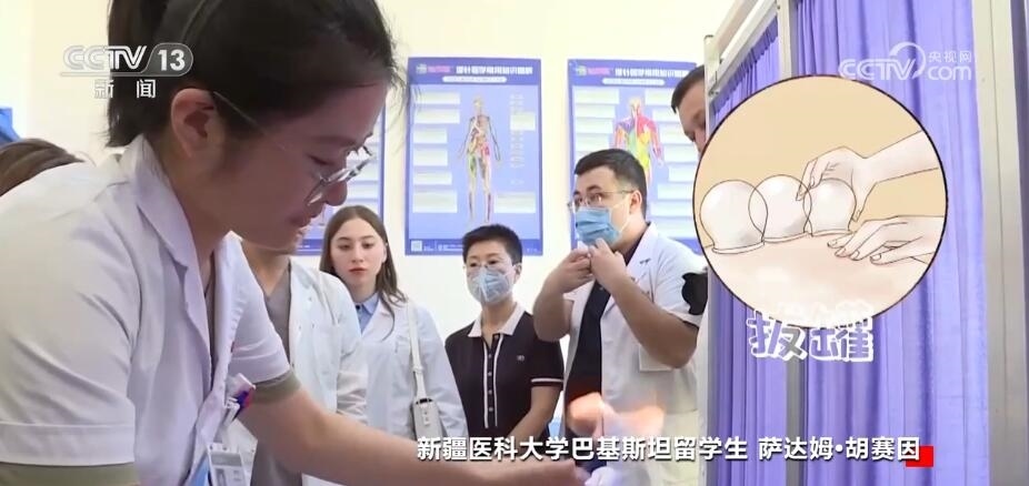 新疆醫(yī)科大學(xué)巴基斯坦留學(xué)生 薩達(dá)姆?胡賽因:“一帶一路”以后,對(duì)我們的老百姓也有很大的幫助,主要是中國(guó)的醫(yī)生過(guò)去。我是前面胳膊拉傷,中醫(yī)醫(yī)生就給我揉一揉,拍我的這個(gè)肩膀胳膊,拍了差不多200次,后面給我拔罐兒,做了一次,我基本上就沒疼了。我覺得這個(gè)很神奇。