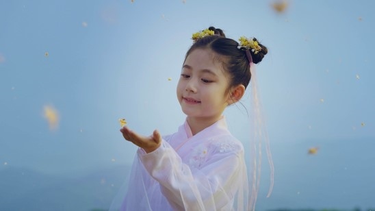 金桂少女手持金桂花環(huán)準備歡迎運動員入場