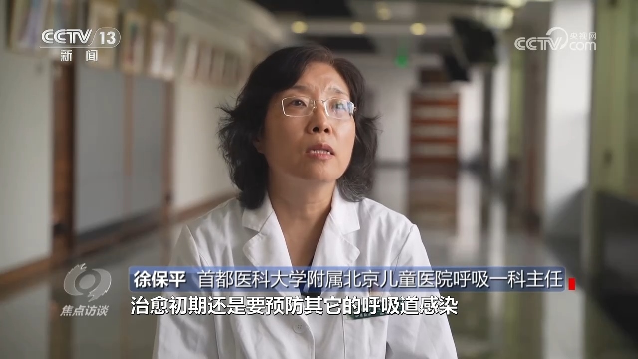 徐保平:“治愈初期還要預(yù)防其他呼吸道感染,因為這個時候整體的機體抵抗力低。另外,因為支原體肺炎或者支原體感染的時候,很多孩子有高熱,影響食欲,所以在恢復(fù)期可以增加營養(yǎng)。還有就是循序漸進恢復(fù)體育鍛煉,讓孩子體質(zhì)盡快恢復(fù)正常。”