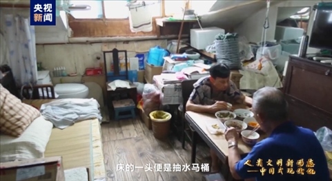 2022年9月,隨著上海全面完成成片二級舊里以下房屋改造,黃浦區(qū)建國東路68街坊的搬遷也接近尾聲。88歲的胡榮干和老伴兒已經(jīng)在這里生活了50多年。14.3平方米的狹小空間,各種物品堆放得滿滿當當,床的一頭便是抽水馬桶。