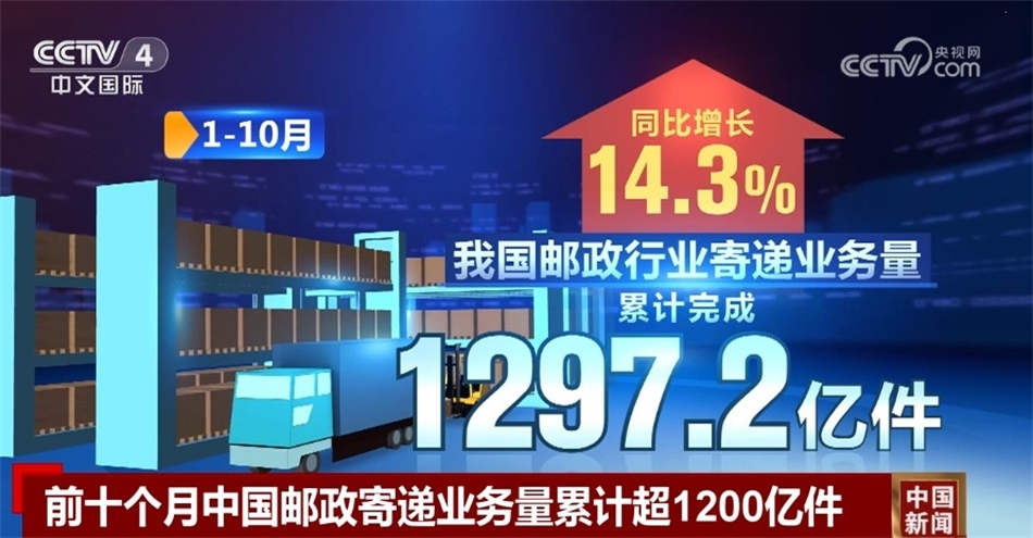 ?????? 前十個(gè)月中國郵政寄遞業(yè)務(wù)量累計(jì)超1200億件