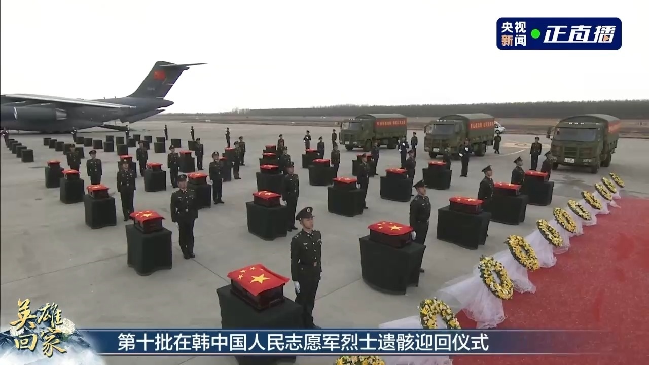 記者從退役軍人事務(wù)部了解到,今天(11月23日)上午,第十批25位在韓中國(guó)人民志愿軍烈士遺骸及遺物由空軍專機(jī)護(hù)送從韓國(guó)接回遼寧沈陽(yáng)。