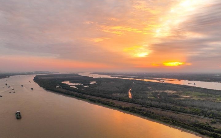 長江新濟洲日落時分景色(11月13日攝,無人機照片)。記者 季春鵬 攝