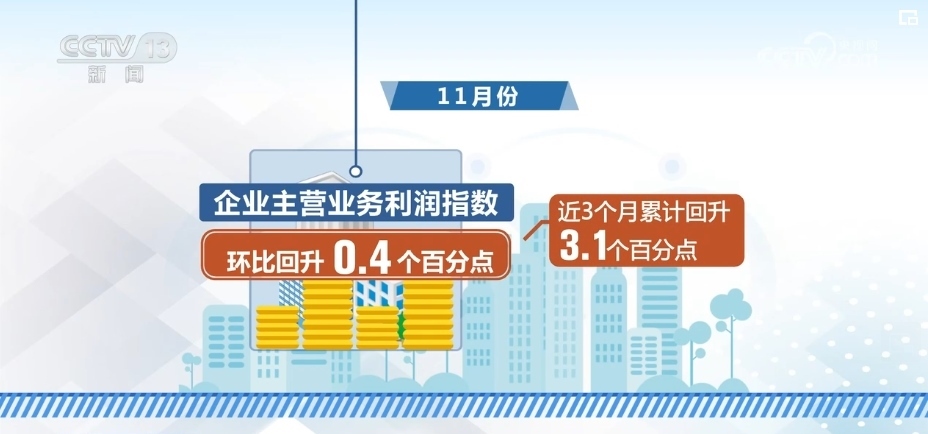 從分項指數(shù)來看,11月份,企業(yè)主營業(yè)務利潤指數(shù)環(huán)比回升0.4個百分點,近3個月累計回升3.1個百分點。