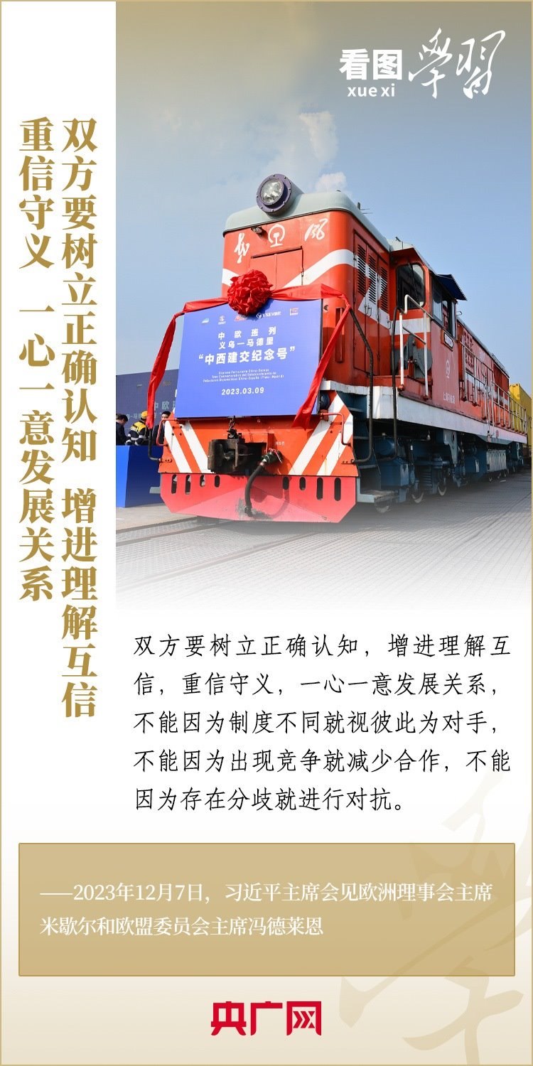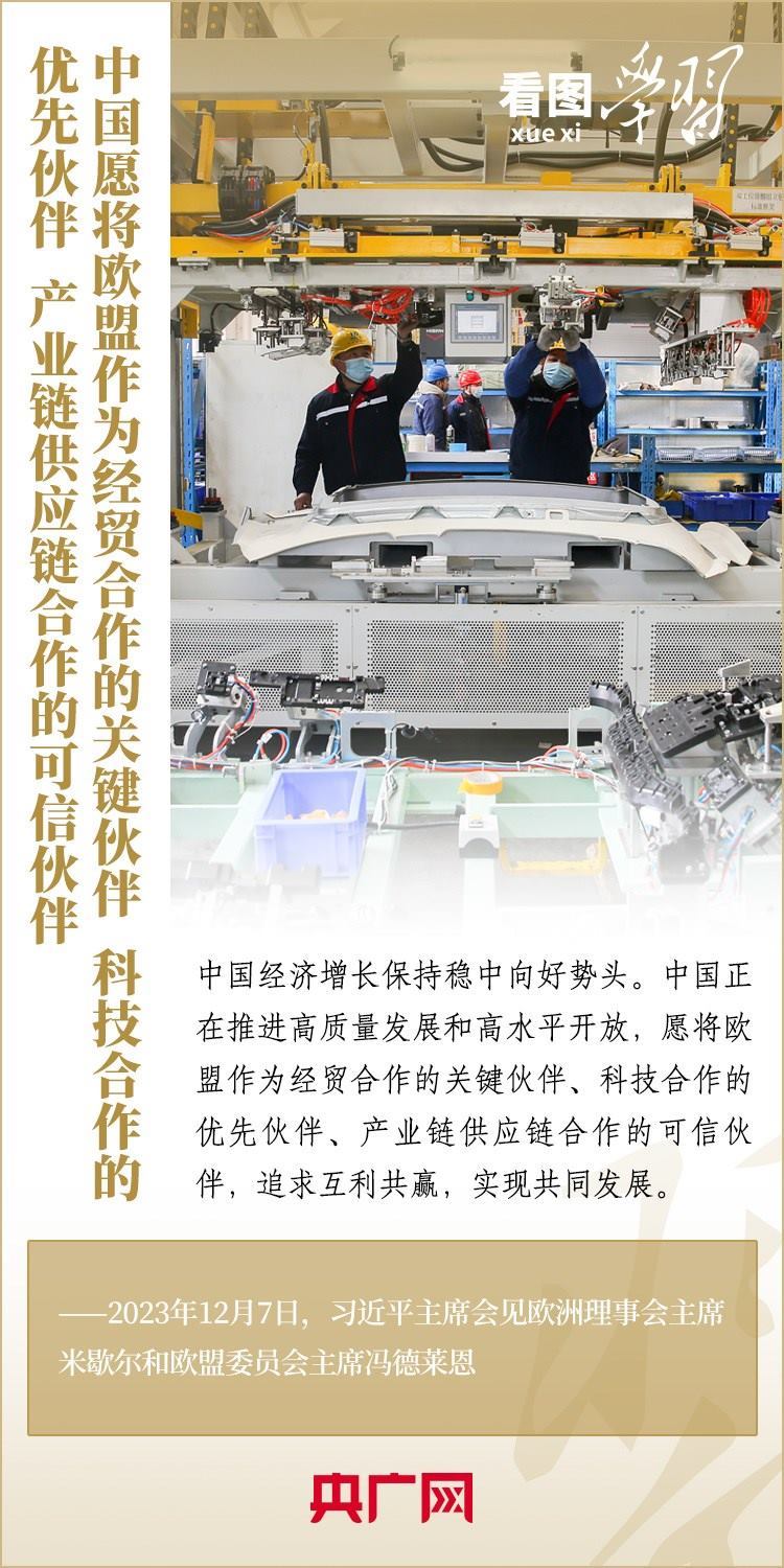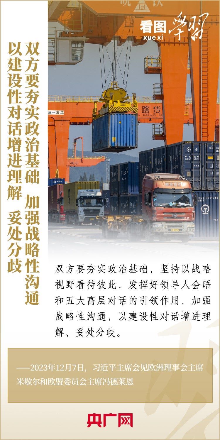 12月7日,國家主席習近平會見來華舉行第二十四次中國—歐盟領(lǐng)導人會晤的歐洲理事會主席米歇爾和歐盟委員會主席馮德萊恩,雙方就事關(guān)中歐關(guān)系的戰(zhàn)略性問題,以及中歐各領(lǐng)域?qū)υ捄献?、雙方重點關(guān)切、全球治理、國際和地區(qū)熱點問題等深入坦誠交換看法,并就一系列問題達成重要共識。今年是中歐建立全面戰(zhàn)略伙伴關(guān)系20周年,習主席強調(diào),中歐關(guān)系具有戰(zhàn)略意義和世界影響,關(guān)乎世界和平、穩(wěn)定、繁榮。一起來學習!