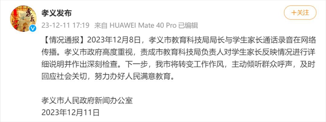 ·山西一家長反映問題時(shí)遭教科局長爆粗口,官方通報(bào):作出深刻檢查。