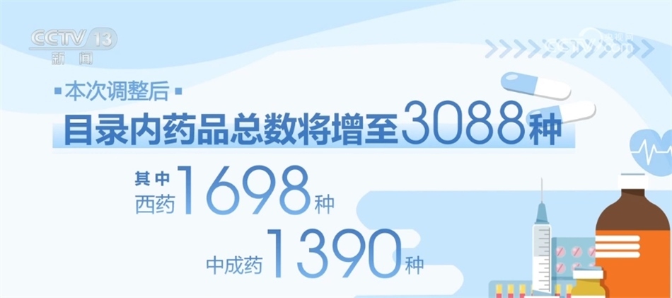 此次調(diào)整共新增126種藥品,其中腫瘤用藥21種,新冠、抗感染用藥17種,糖尿病、精神病、風濕免疫等慢性病用藥15種,罕見病用藥15種(其中阿伐替尼片同為腫瘤用藥),其他領域用藥59種。同時,調(diào)出了1種即將撤市的藥品。本次調(diào)整后,目錄內(nèi)藥品總數(shù)將增至3088種,其中西藥1698種、中成藥1390種。