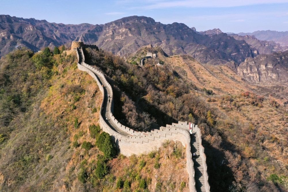 這是在天津市薊州區(qū)拍攝的黃崖關(guān)長(zhǎng)城太平寨段秋景(無(wú)人機(jī)照片,2023年11月6日攝)。