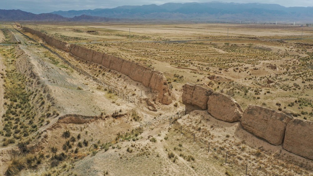 這是在甘肅省張掖市山丹縣拍攝的明長(zhǎng)城(無(wú)人機(jī)照片,2023年5月16日攝)。