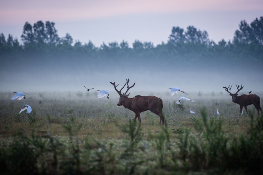 8月1日,兩頭麋鹿在湖北石首麋鹿國家級自然保護(hù)區(qū)內(nèi)活動。
