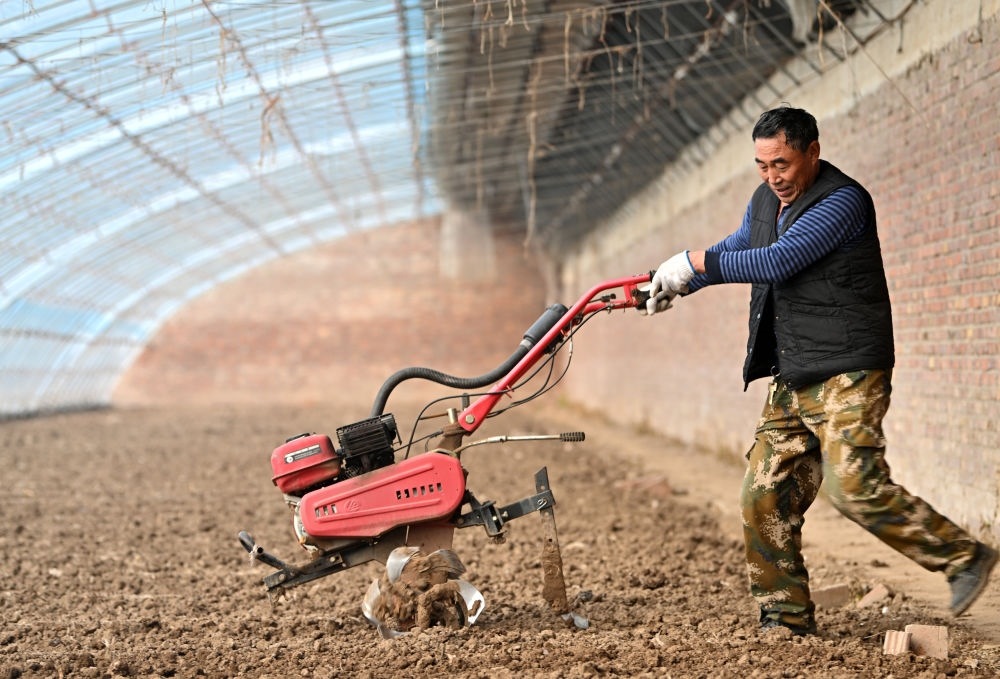 在天津市西青區(qū)辛口鎮(zhèn)水高莊村,農(nóng)戶在修繕后的大棚內勞作(12月12日攝)。新華社記者 李然 攝