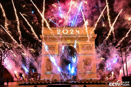 當?shù)貢r間2024年1月1日,法國巴黎舉行新年慶祝活動,凱旋門前燃放煙花。