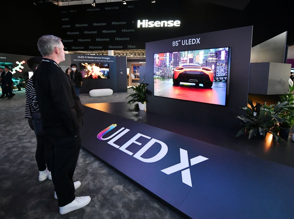 2023年9月1日,參觀者在德國柏林國際消費電子展海信展區(qū)觀看ULED X參考級影像電視。新華社記者 任鵬飛 攝