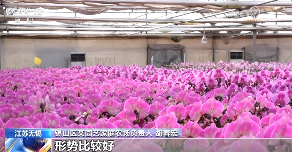 在江蘇無錫錫山國家現代農業(yè)產業(yè)園的花卉中心,各家花卉門店前迎來一波波的買花人,蝴蝶蘭、大花蕙蘭、紅掌、仙客來等烘托喜慶氛圍的鮮花受到人們的喜愛。