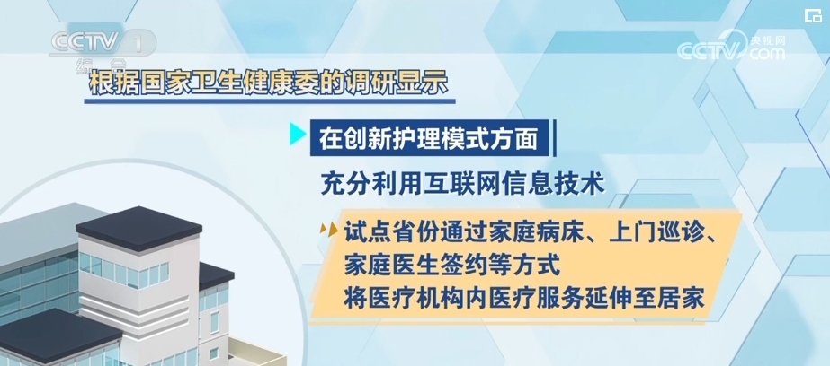 在創(chuàng)新護理模式方面,充分利用互聯(lián)網(wǎng)信息技術(shù),試點省份通過家庭病床、上門巡診、家庭醫(yī)生簽約等方式,將醫(yī)療機構(gòu)內(nèi)醫(yī)療服務(wù)延伸至居家。目前,共計有3000多個醫(yī)療機構(gòu),可以上門為居家老年人提供7大類60多項醫(yī)療護理服務(wù)項目,減輕了患者和家屬的負擔(dān)。