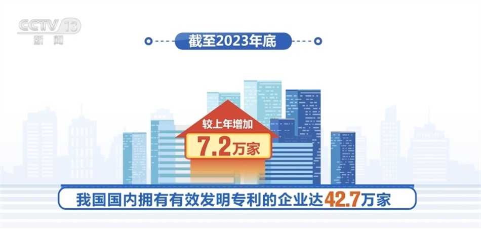 截至2023年年底,我國國內(nèi)擁有有效發(fā)明專利的企業(yè)達(dá)42.7萬家,較上年增加7.2萬家。國內(nèi)企業(yè)擁有有效發(fā)明專利290.9萬件,占比增至71.2%,首次超過七成,創(chuàng)新主體地位進(jìn)一步凸顯。