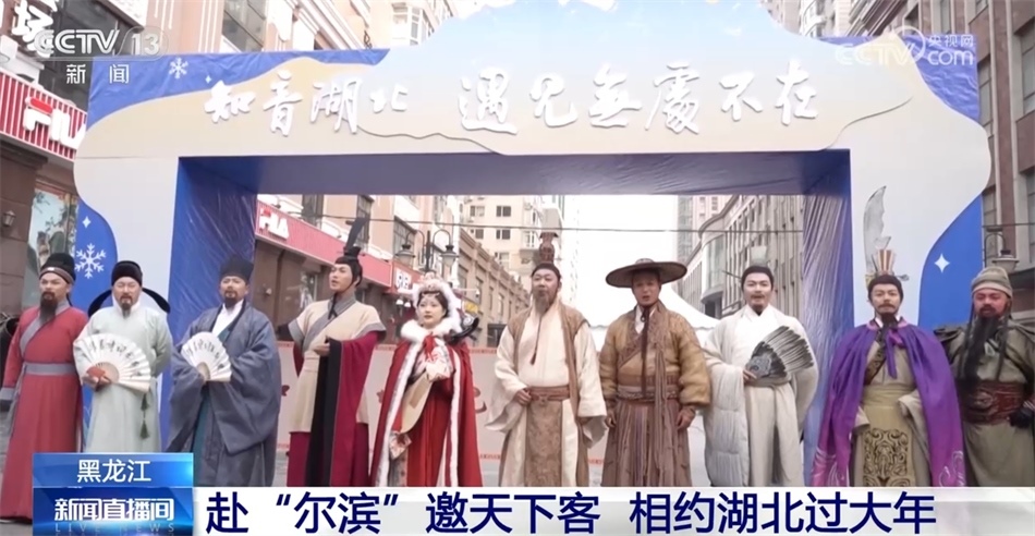 這些天,一群來自湖北的特殊游客抵達(dá)黑龍江哈爾濱,開啟他們的冰雪之旅。他們是湖北省文化和旅游廳組織扮演的“歷史名人天團(tuán)”,既有屈原、伯牙子期等,也有李白、蘇東坡等曾在湖北留下著名詩篇的文人。他們在中央大街聚首,“拼”詩詞展音律,傳遞傳統(tǒng)文化之美。在暢享北國風(fēng)光的同時,也為游客們送上一場超級文旅秀和文旅大禮包,邀請全國游客“去湖北過大年”。