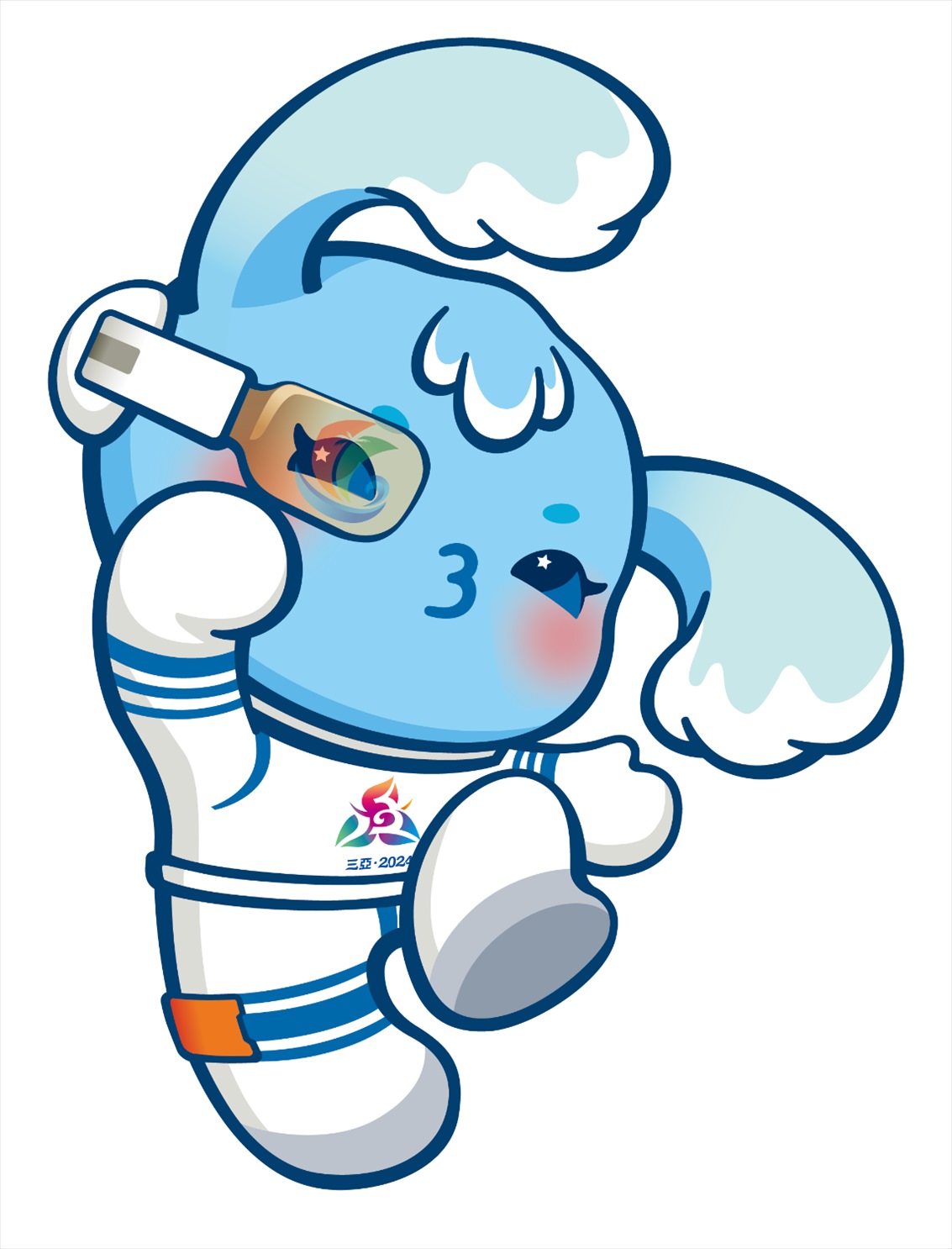 吉祥物由清華大學(xué)美術(shù)學(xué)院團(tuán)隊(duì)創(chuàng)作完成。吉祥物“吉貝”是一只海精靈,名字取自《尚書(shū)·禹貢》和蘇東坡的詩(shī)詞,在歷史上專指“黎錦”這一中華民族優(yōu)秀傳統(tǒng)文化的典型代表,黎錦也是世界級(jí)非物質(zhì)文化遺產(chǎn),同時(shí)“吉貝”也有“吉祥寶貝”的意思;海精靈身著宇航服,寓意星辰大海,佩戴的AI智能眼鏡中映射出海南自由貿(mào)易港的標(biāo)志,寓意科技與現(xiàn)代化。海精靈展現(xiàn)了中華民族團(tuán)結(jié)奮斗、揚(yáng)帆征程,攜手邁向中國(guó)式現(xiàn)代化的精氣神。