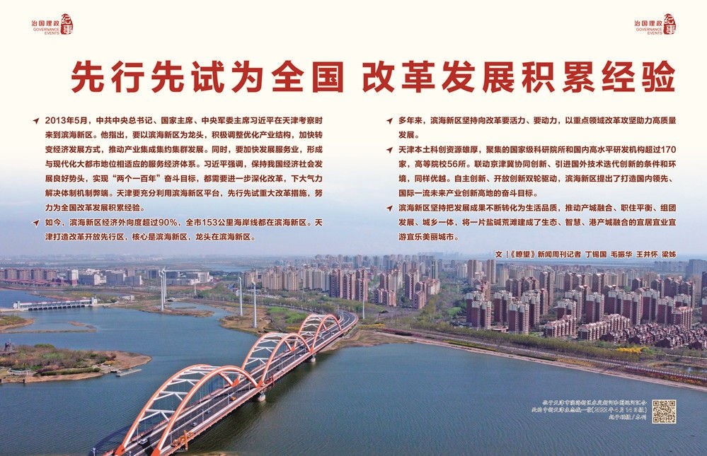 以打造新時(shí)代高質(zhì)量發(fā)展示范區(qū)為目標(biāo),濱海新區(qū)堅(jiān)持活力在“試”、特質(zhì)在“新”、目標(biāo)在“高”,以實(shí)體經(jīng)濟(jì)、港口資源、產(chǎn)業(yè)創(chuàng)新等優(yōu)勢為支撐,以科技創(chuàng)新、體制改革、擴(kuò)大開放等為引領(lǐng),努力在全市高質(zhì)量發(fā)展中做先鋒、當(dāng)主力,成為北方區(qū)域經(jīng)濟(jì)發(fā)展的輻射引擎、體制機(jī)制創(chuàng)新的重要源頭。