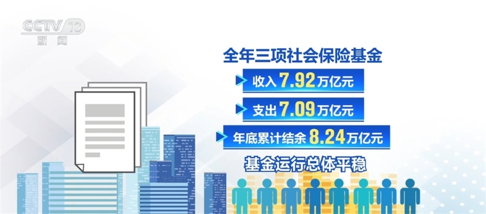 截至2023年底,我國基本養(yǎng)老、失業(yè)、工傷保險參保人數(shù)分別為10.66億人、2.44億人、3.02億人,同比增加1336萬人、566萬人、1054萬人。全年三項社會保險基金收入7.92萬億元,支出7.09萬億元,年底累計結余8.24萬億元,基金運行總體平穩(wěn)。