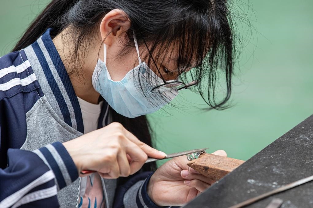?2023年11月29日,山東昌樂技師學院首飾設計與制作專業(yè)師生在練習專業(yè)技能。新華社記者張力元 攝