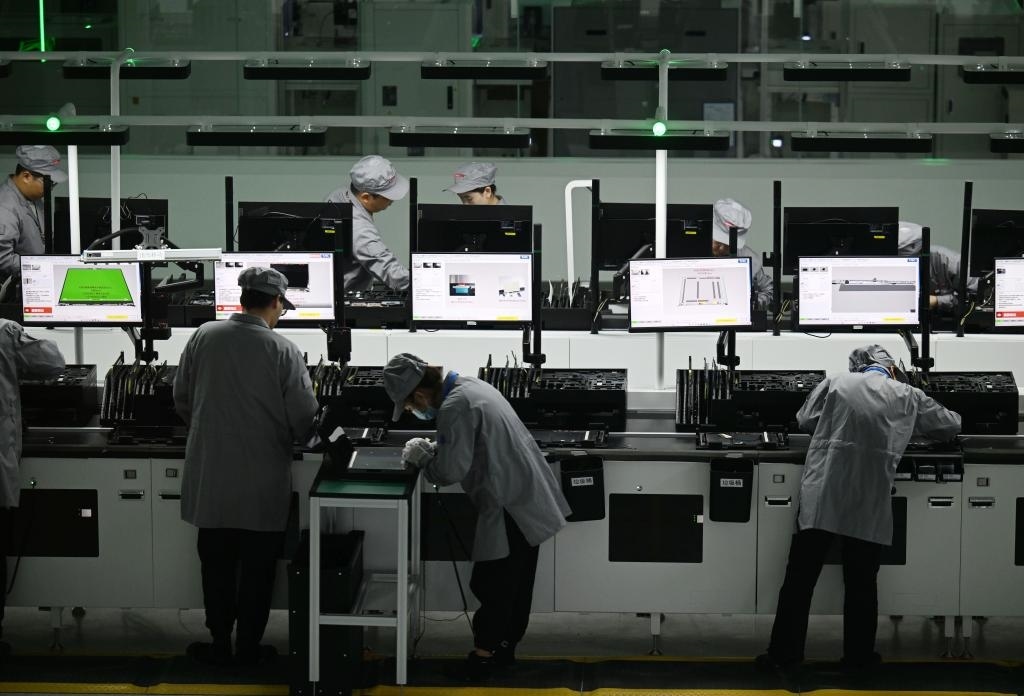 2023年11月6日,工作人員在聯(lián)想集團創(chuàng)新產(chǎn)業(yè)園(天津)筆記本生產(chǎn)線作業(yè)。新華社記者 趙子碩 攝