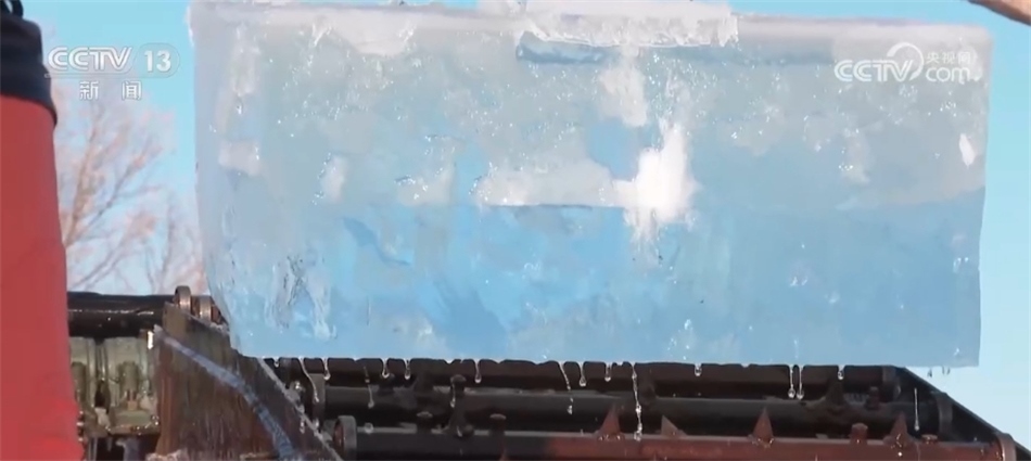 看冰燈、玩超長(zhǎng)冰滑梯、和萬人在冰天雪地?zé)嵛瑁巯碌墓枮I冰雪大世界堪稱歡樂的海洋。此時(shí),同樣熱鬧的還有松花江的冰面上,機(jī)器轟鳴、冰花飛濺,一塊塊晶瑩剔透的冰被拖出水面,裝車送往存冰場(chǎng)。
