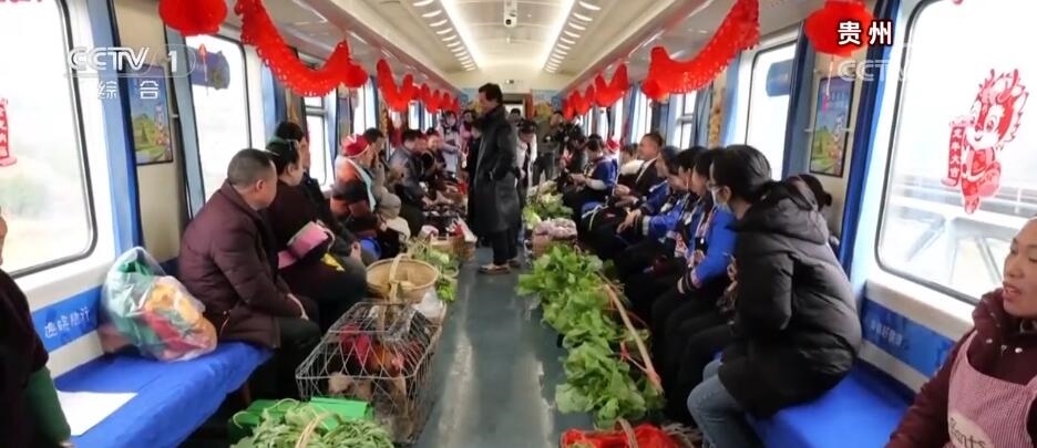 買年貨,除了商超、集市,批發(fā)市場,還可以在火車上。在貴州,有一趟往返于貴陽與玉屏之間的“慢火車”5640次列車,里面專設(shè)了一個農(nóng)特產(chǎn)品車廂。新春臨近,列車上的農(nóng)特產(chǎn)品車廂變得熱鬧起來,村民們將自家養(yǎng)殖的土雞、雞蛋,熏制的香腸、臘肉,以及水果、蔬菜帶上列車,向旅客現(xiàn)場售賣,車廂里喜氣洋洋。