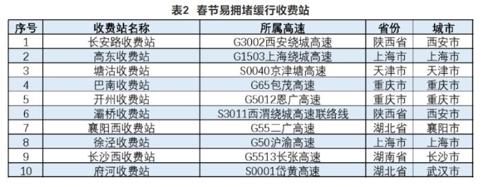 報告還公布了高速公路預(yù)計易發(fā)生擁堵緩行的路段、收費(fèi)站以及較繁忙的服務(wù)區(qū)。