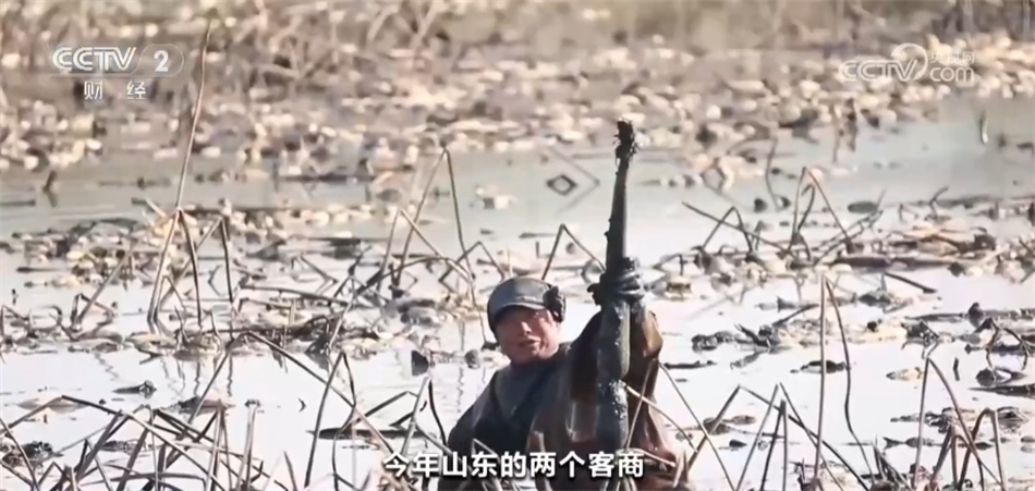 江蘇省淮安市洪澤區(qū)岔河鎮(zhèn)蓮藕種植戶 王金:我今年長(zhǎng)了100畝河藕,今年這個(gè)春節(jié)前市場(chǎng)需求量很大,山東的兩個(gè)客商跟我訂了20萬(wàn)斤藕。