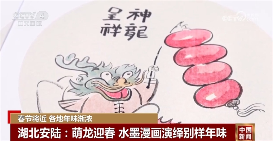在湖北安陸市的河濱公園,100名水墨漫畫創(chuàng)作者緊扣龍年主題,結(jié)合龍年元素發(fā)揮想象力,現(xiàn)場創(chuàng)作了近千幅“龍”味十足的水墨漫畫,為游客獻上別樣的新春文化盛宴,也寄托了新的一年對自己、家人以及祖國的祝愿。