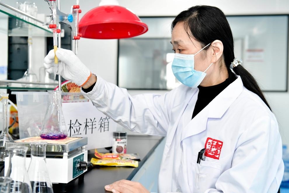 工作人員在樂陵市調(diào)味品產(chǎn)業(yè)共享實驗室對送樣調(diào)味品進行檢測。新華社記者 郭緒雷 攝