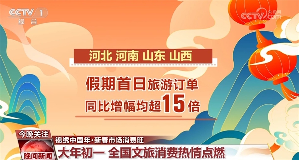 這個(gè)春節(jié)假期,全國的文旅消費(fèi)熱情也被點(diǎn)燃。數(shù)據(jù)顯示,多地在大年初一迎來游客高峰,河北、河南、山東、山西四省在假期首日的旅游訂單同比增幅均超15倍,而屢屢刷屏的洛陽各景點(diǎn)門票訂單更是同比增長35倍。