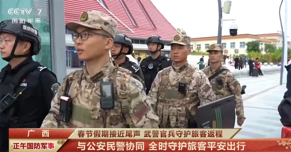 央視網(wǎng)消息:2月16日是農(nóng)歷大年初七,春節(jié)假期接近尾聲,大家也陸續(xù)踏上了返程旅途。各地武警官兵堅守執(zhí)勤崗位,多措并舉守護旅客返程安全。