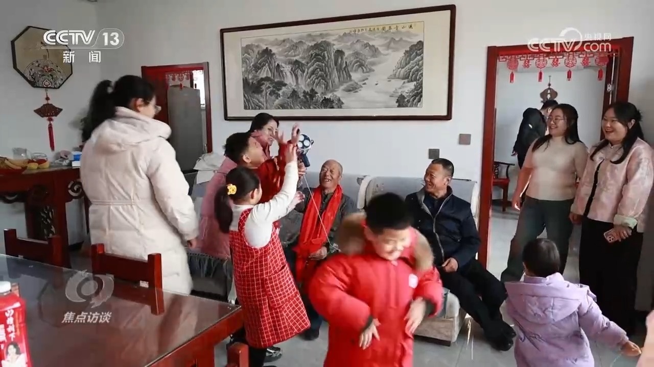 除夕,大紅的“福”字透著節(jié)日的喜氣。在河北省武邑縣的大劉莊村,83歲的郭順義老人家里格外熱鬧,四世同堂的5個家庭,15口人團(tuán)聚在一起過年,這是這個大家庭一年中最重要的日子。